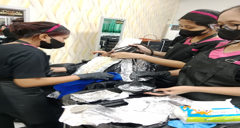 Peserta didik mengikuti kegiatan dengan antusias dan rasa ingin tahu yang tinggi. Mereka tidak hanya belajar melalui pengamatan, tetapi juga melakukan praktik langsung yang membuat materi lebih mudah dipahami dan diaplikasikan. Kegiatan ini juga menjadi kesempatan bagi peserta untuk mengasah keterampilan komunikasi, kerja tim, dan pengambilan keputusan dalam situasi kerja yang menyerupai kondisi di salon.